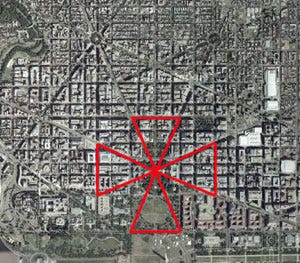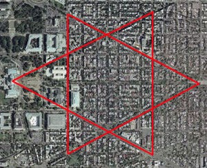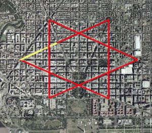 The street design in Washington, D.C., has been laid out in such a manner that certain Satanic symbols are depicted by the streets, cul-de-sacs and rotaries. This design was created in 1791, a few years after Freemasonry assumed the leadership of the New World Order, in 1782.