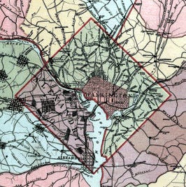 The boundaries of the city, established by George Washington in 1791, form a square 10 miles long on each side, centered on the originally proposed location for the Washington Monument. The east-west diagonal of the square crosses over the Capitol building and the north-south diagonal crosses over the White House.