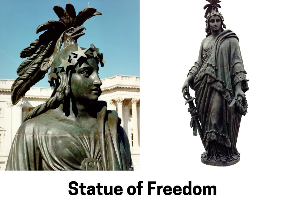 Above the dome of the Capitol building stands Lady Libertas, the goddess Isis.