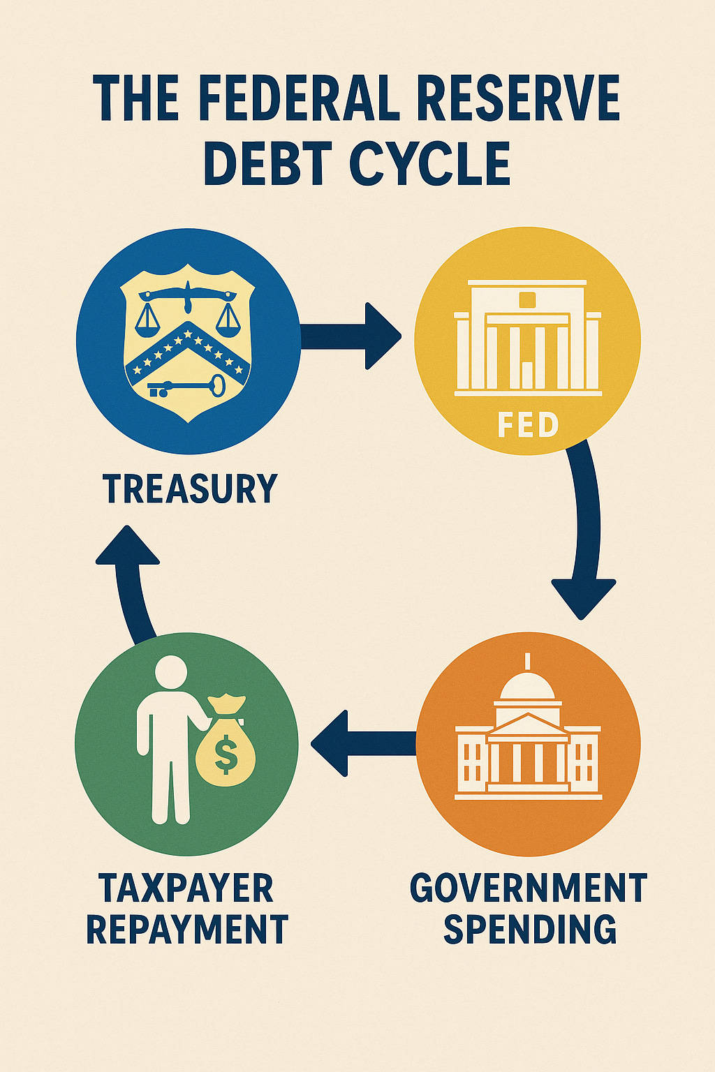 To cover this debt, taxes are levied on the people. In essence, every dollar you pay to the IRS helps sustain the cycle of borrowing and repayment—a treadmill of perpetual debt. You’re not funding America’s prosperity; you’re funding a privately owned bank’s profit machine.