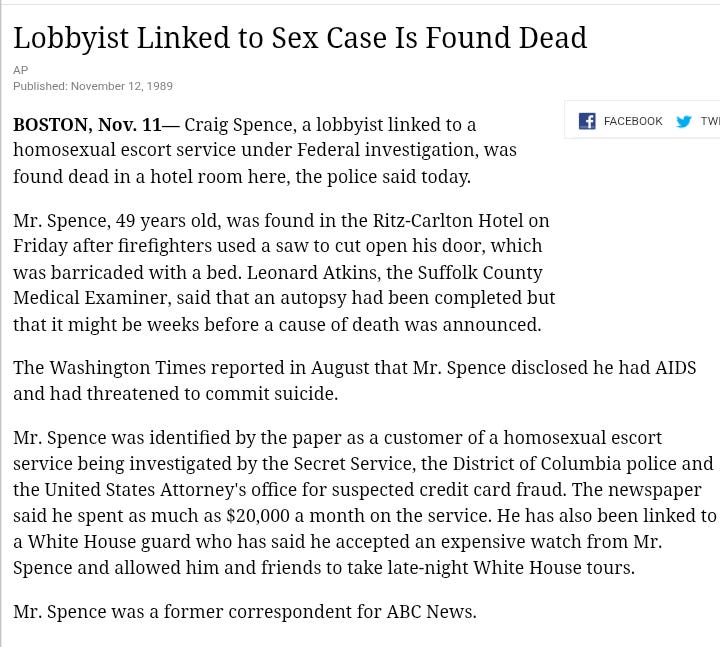 Lobbyist and ex-ABC News reporter Craig Spence, who was part of the D.C. pedo ring that allegedly involved George H.W. Bush, mysteriously died at the Ritz-Carlton Hotel in Boston in 1989.