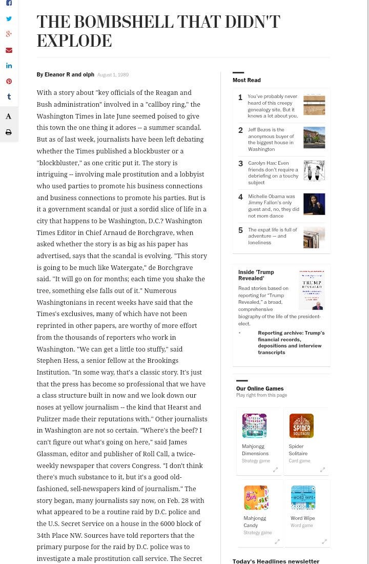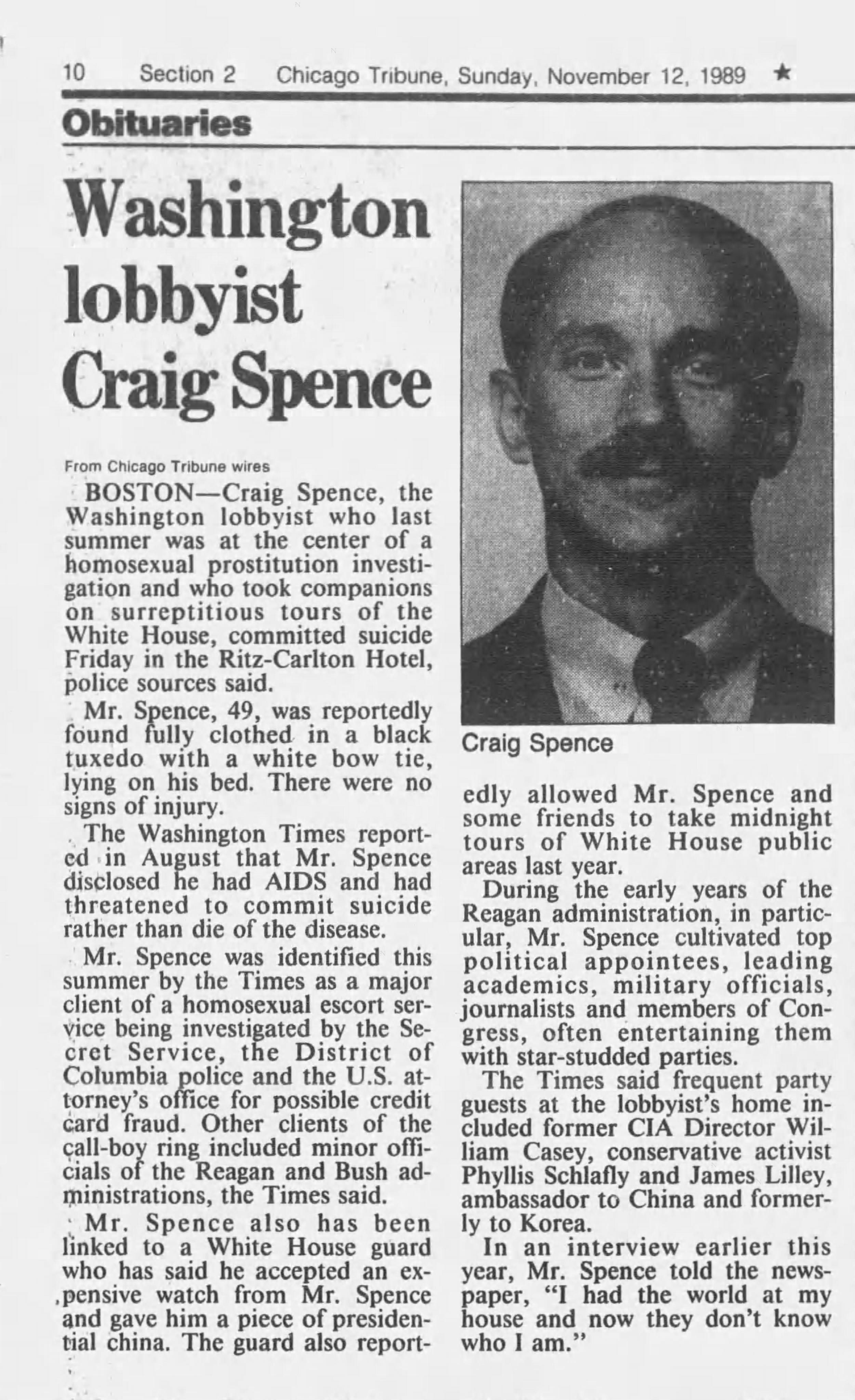“Homosexual prostitution inquiry ensnares VIPs with Reagan, Bush: ‘Call boys’ took midnight tour of White House” blared the headline of The Washington Times on June 29, 1989.