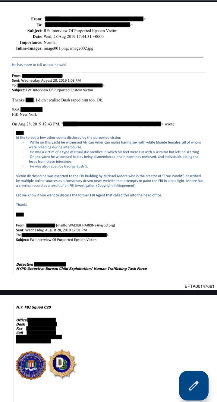 We know a redacted FBI agent said "I didn't realize Bush raped him too. Ok."
