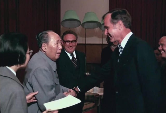 Nixon appointed George Bush RNC chairman in 1973. Bush made Nixon think he was on his side, then Bush flipped and called for Nixon to resign 2 days before it happened. Bush went on to become ambassador to Mao, working with Zionist Kissinger to help make China a superpower