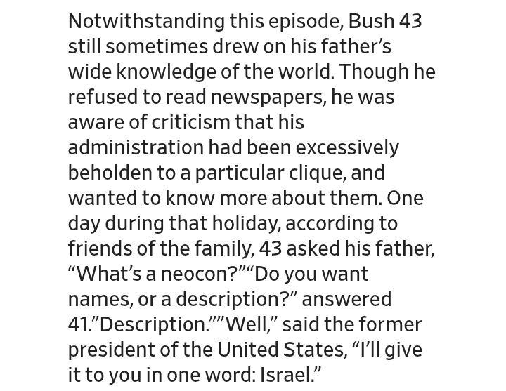 In August 2004, more than 3 years into his presidency, neocon president George W. Bush asked his father what “neocon” means.