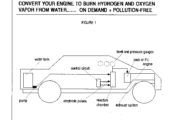 Exceedingly simple. Water is pumped as needed to replenish and maintain the liquid level in the chamber. The electrodes are vibrated with a 0.5-SA electrical pulse which breaks 2(H20) ---> 2H2 + 02. When the pressure reaches say 30-60 psi, you turn the key and go. You step on the pedal, you send more energy to the electrodes, and thus more vapour to the cylinders; i.e. fuel vapour on demand. You set the idle -max flow rate to get the most efficient use of power, and you’re off to the races.