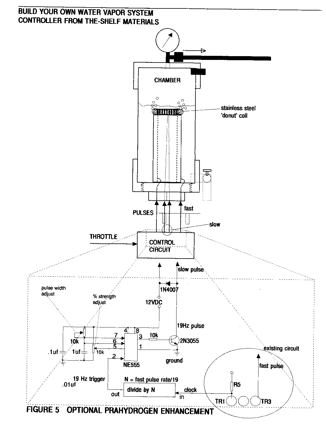 To help speed up your orientation and understanding of what’s explained in the paper, I’ll give the reader a brief overview of how the system works first and will later add a parts list, telling you where you can obtain the needed parts. I realize that it’s easy for those with a background in electronics to build the controller circuit, but not so easy for non techies. With that in mind, I’ll probably assemble a ready made kit which will include the controller circuit, and perhaps the reaction chamber, the dash gauges, etc. to simplify running around on your part. If you have the ability and time though, the necessary info is included in this paper to assemble everything yourself.